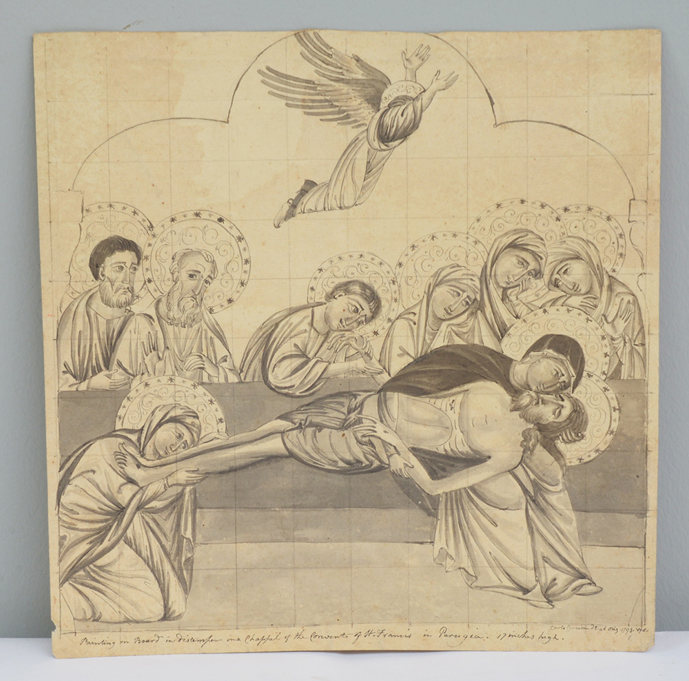 Ignoto "Cristo deposto" acquerello su carta (cm 31x30) iscritto in basso