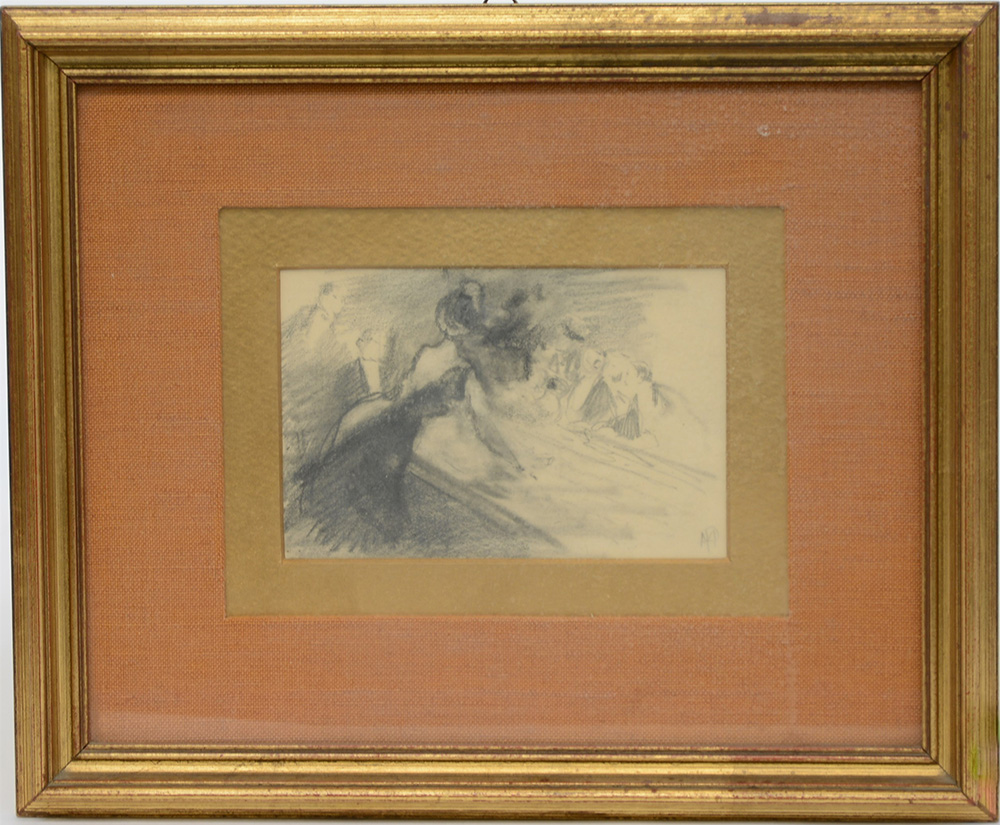 "Casinò di Montecarlo" disegno a matita su carta (cm 9x14) Siglato in basso a destra. Al retro: timbro dell'artista e dello studio Pompeo Mariani, Bordighera. In cornice