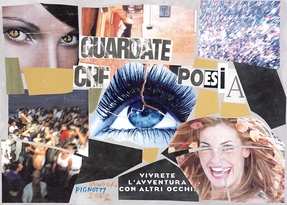 LAMBERTO PIGNOTTI Firenze 1926 - Guardate che poesia, 2002, collage su cartone cm. 50x70, firma e anno in basso a sinistra, titolo, firma e anno al retro.