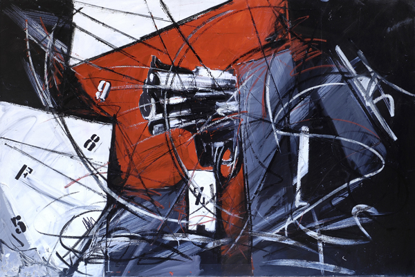 Topi Gun Olio su tela emulsionata, cm. 100x150 Autentica dell'autore su foto. € 0/0