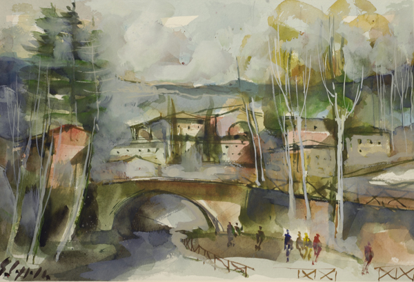 Alfredo Torricini Paesaggio Tecnica mista su carta, cm. 26,5x41 Firma in basso a destra. € 250/450