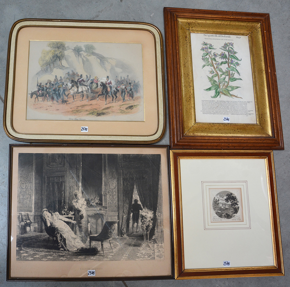 Gruppo di quattro incisioni di differente soggetto, epoche e dimensioni, in...