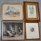 Gruppo di quattro incisioni di differente soggetto, epoche e dimensioni, in cornici (difetti)