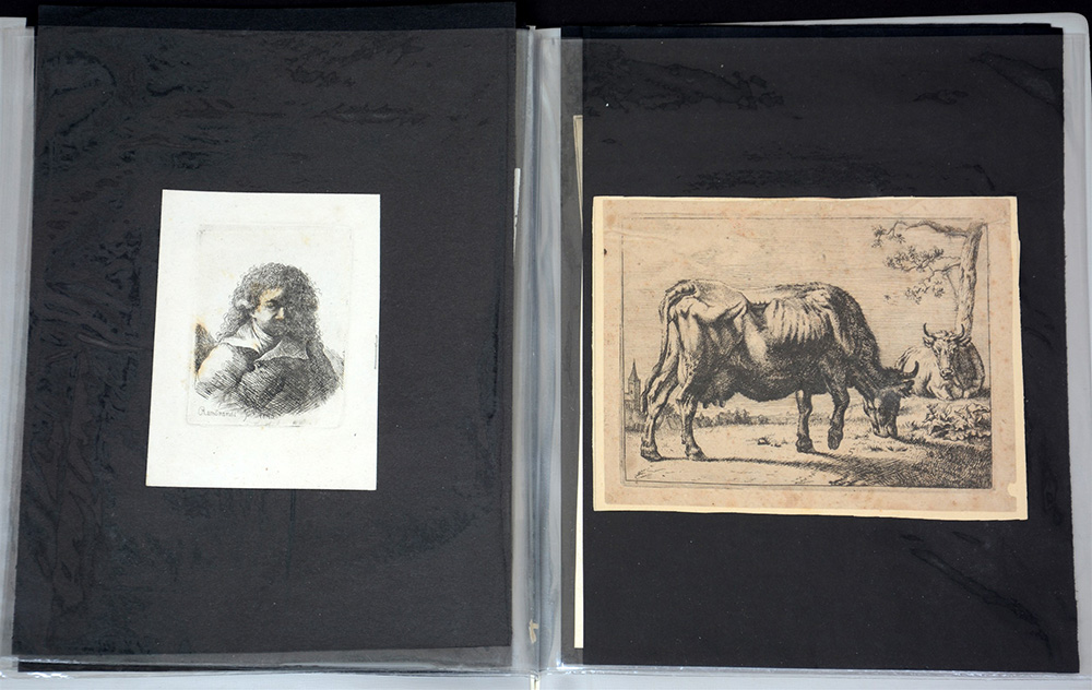 Album contenente numerose incisioni fiamminghe di diversa epoca. Autori: Van Ostade, Rembrandt, Swanevelt e altri (difetti)