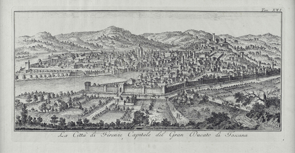 La città di Firenze, Capitale del Gran Ducato di Toscana antica stampa...