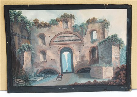 Scuola del sec. XIX "L'arco felice" gouache su carta (cm 31x44) titolata al...