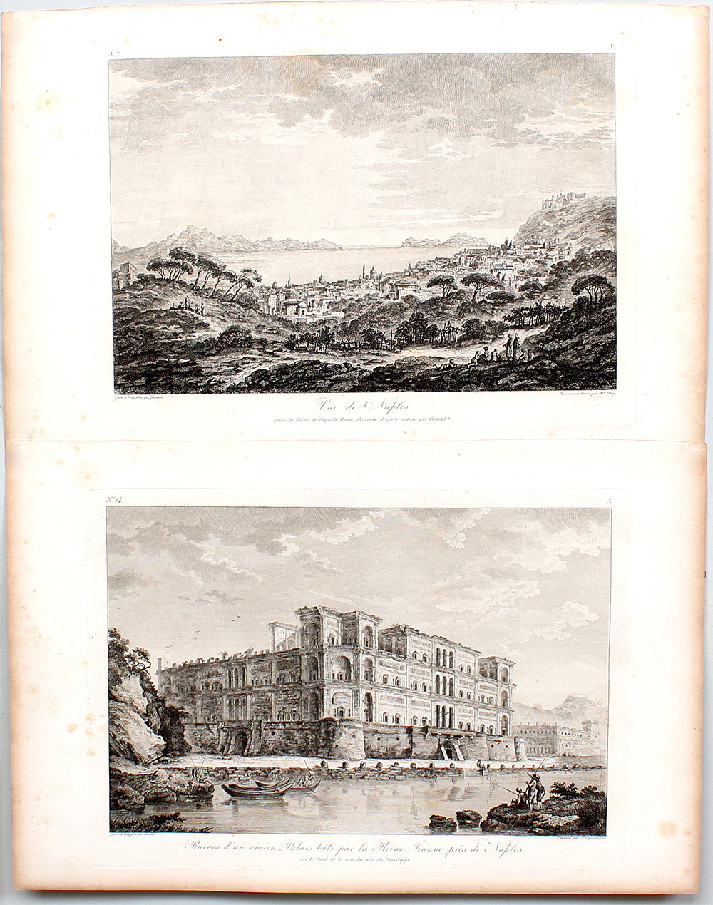 AA.VV. Gruppo di sei acqueforti del sec. XIX raffiguranti scorci di Napoli (difetti)