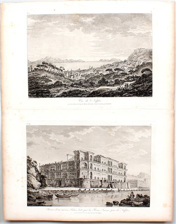 AA.VV. Gruppo di sei acqueforti del sec. XIX raffiguranti scorci di Napoli...