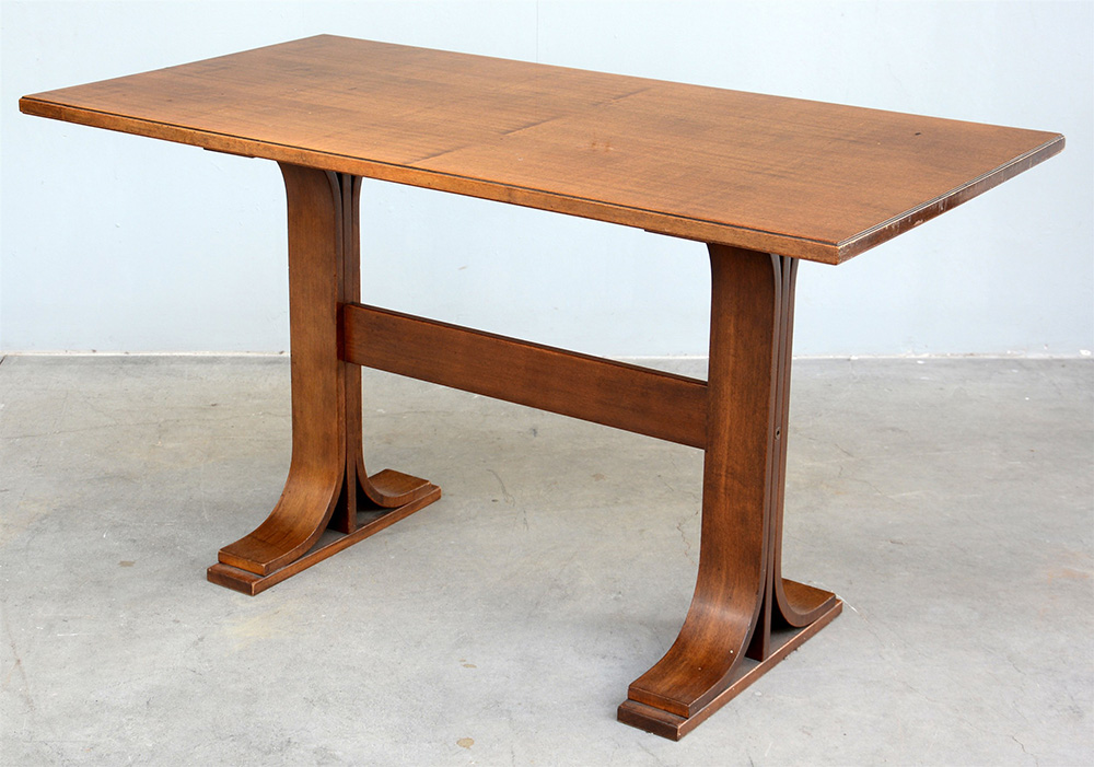 Tavolo scrittoio in legno dolce con gambe riunite da traverse (cm 125x71x65) (difetti)