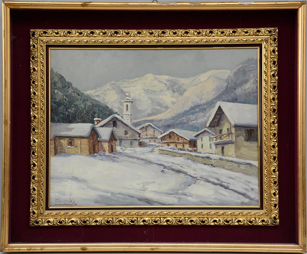 B. Blasius "Paesaggio sotto la neve" olio su cartone (cm 50x70) firmato in...