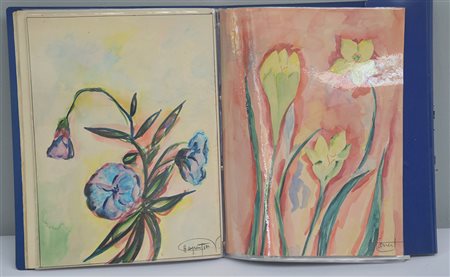 Raccoglitore contenente alcuni acquerelli raffiguranti fiori, alcuni firmati Charpentier