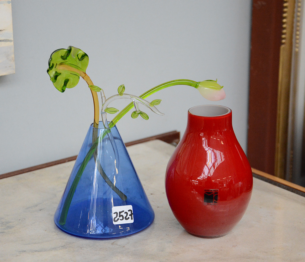 Lotto composto da due vasetti di cui uno con fiori di manifattura Salviati e...
