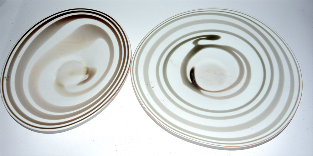 Lotto composto da due centrotavola in vetro policromo di colore, forme e misure diverse