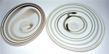 Lotto composto da due centrotavola in vetro policromo di colore, forme e...