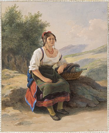 Abraham Teerlink (Dordrecht 1776 - Roma 1857)"Riposo" acquerello su carta (mm...
