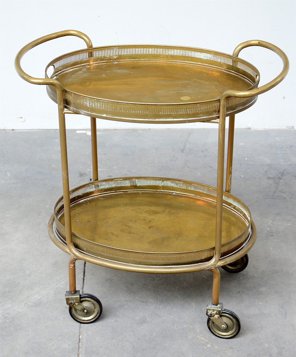 Carrello porta vivande in ottone con piani a vassoi amovibili (difetti)