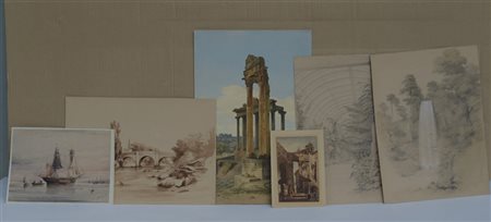 Lotto composto da sei fra disegni e acquerelli di diversa epoca e autore