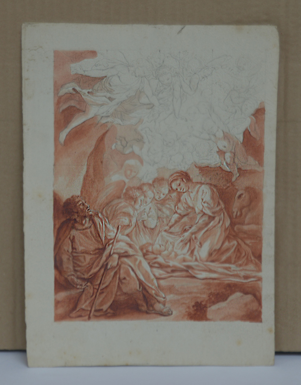 Scuola del sec. XVIII "Natività" sanguigna su carta, iscritta "Altamura" (cm 17,8x23)