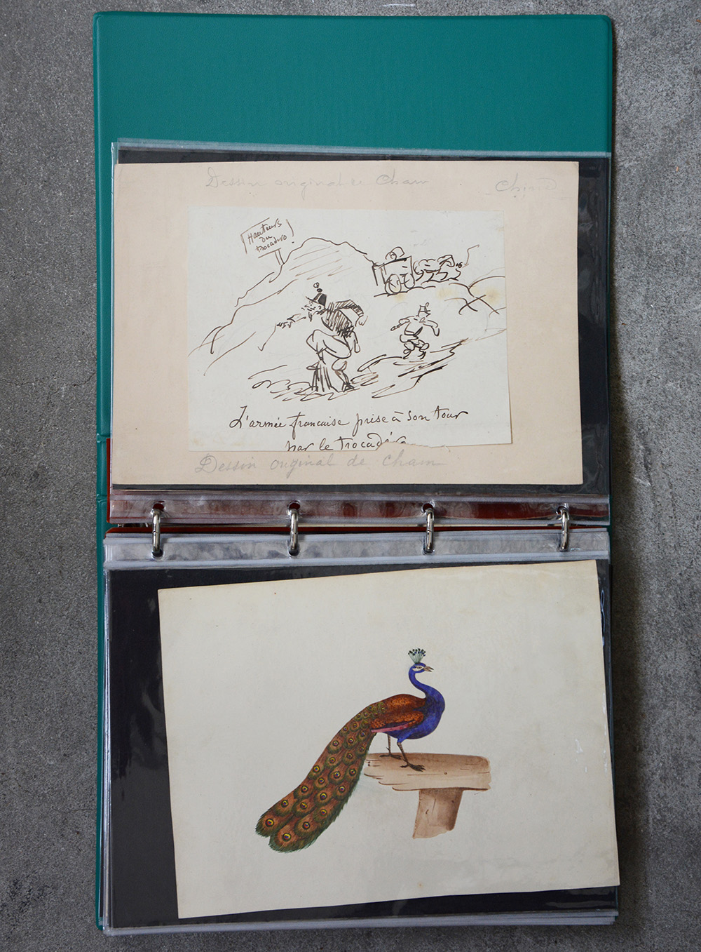 Album contenente alcuni disegni, incisioni del sec. XIX, tre caricature di Cham