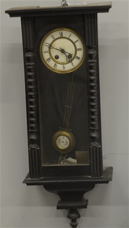 Pendola a muro in legno ebanizzato con quadrante a cifre romane (h cm 70 circa) (difetti)