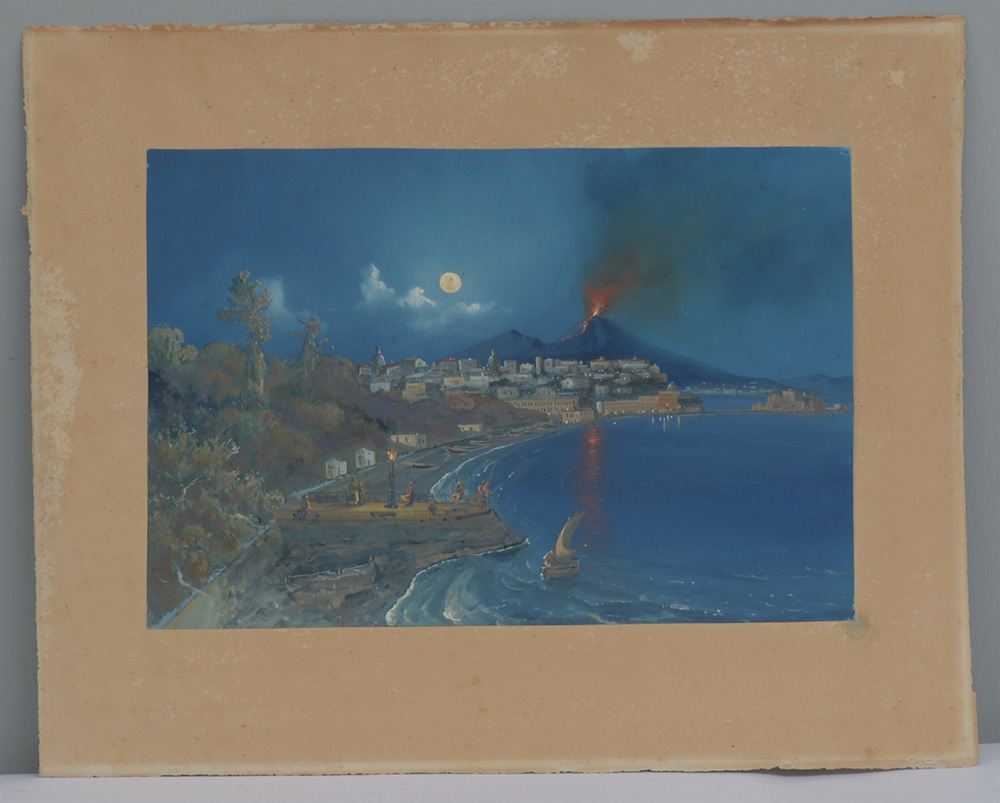 Scuola napoletana fine sec. XIX "Eruzione notturna del Vesuvio" gouache su...