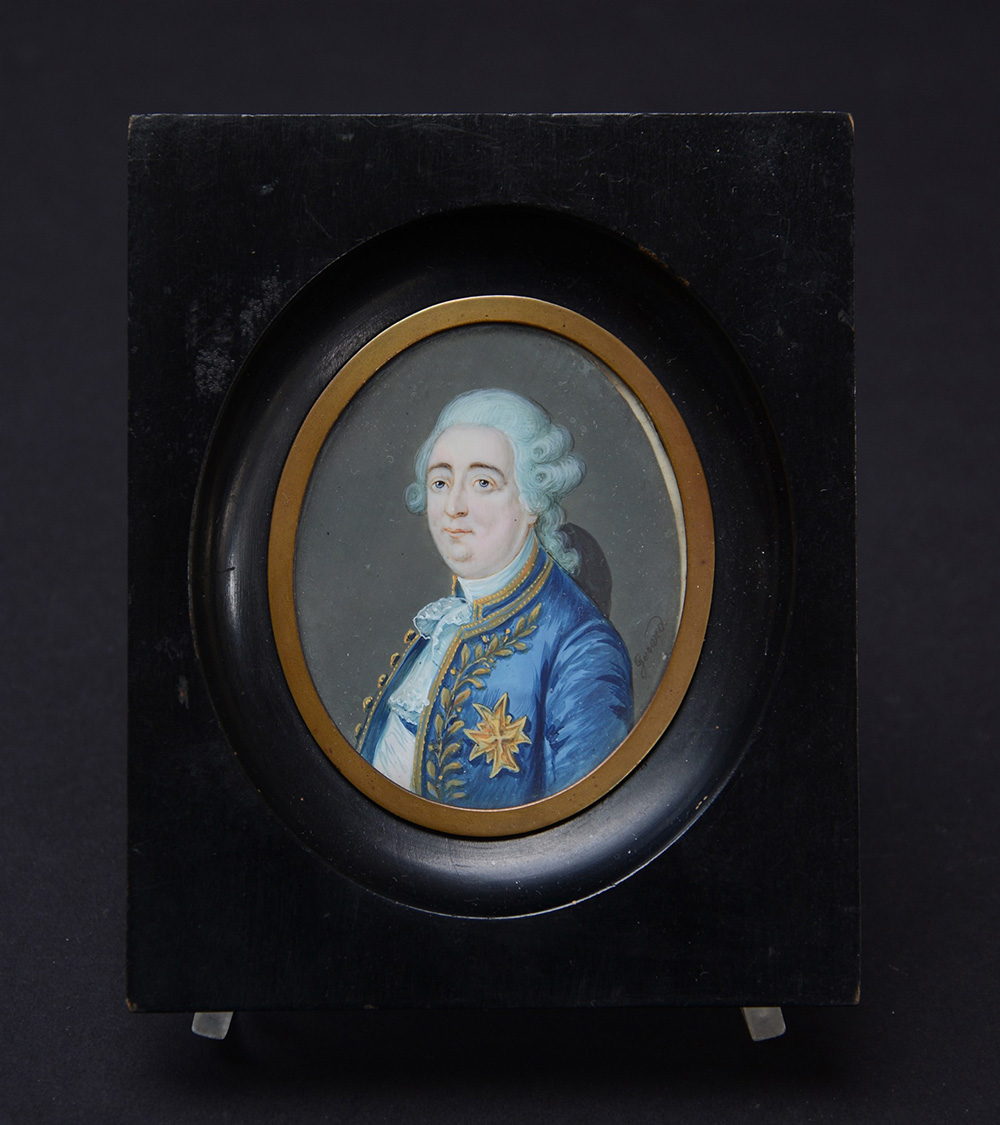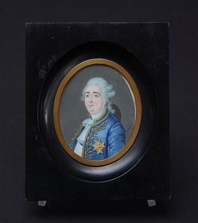 Miniatura ovale raffigurante gentiluomo (cm 7x5,5) in cornice ebanizzata (lievi difetti)