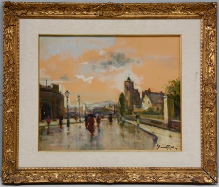 Venanzio Zolla (Colchester 1880 - Torino 1961)"Scorcio cittadino"olio su...