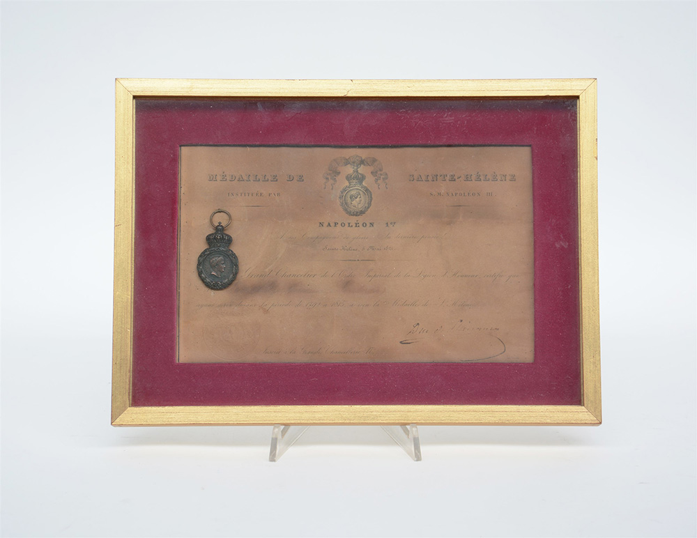 Medaglia di Sant'Elena con relativo brevetto di assegnazione, prima metà sec....