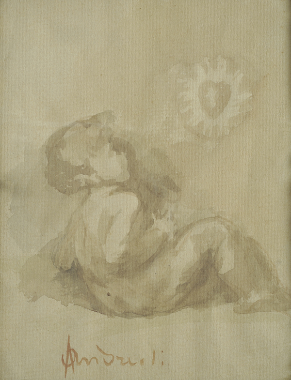 Attilio Andreoli (Milano, 1877 - 1950) Bimbo Acquarello su cartoncino, cm. 28,5x23,5 Firma in basso al centro. € 100/200
