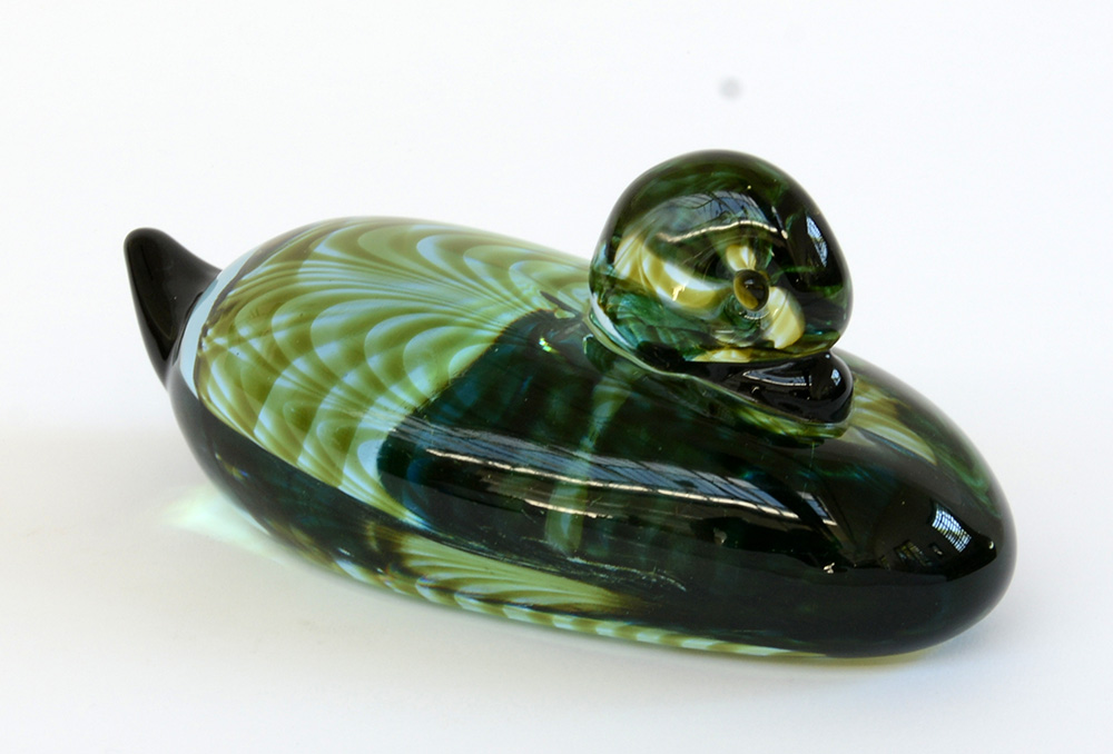 "Anatra"Manifattura di Murano.Scultura in vetro sommerso incolore ametista...