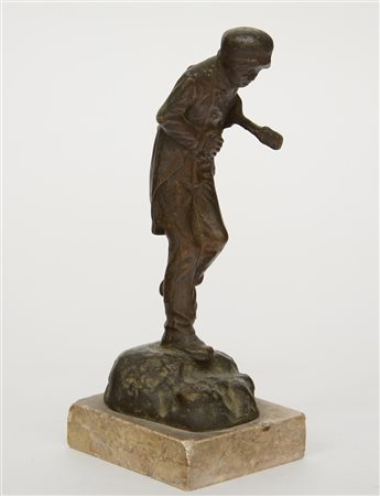 Ignoto, "Suonatore" scultura in bronzo (h cm 19) poggiante su base in marmo (difetti)