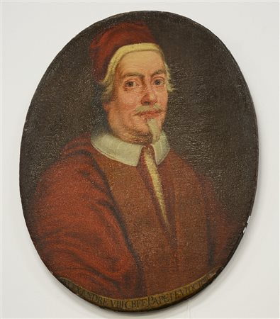 Scuola romana del secolo XVII - "Ritratto di Clemente VII", olio su tela ovale (cm 69x57) (difetti e restauri)