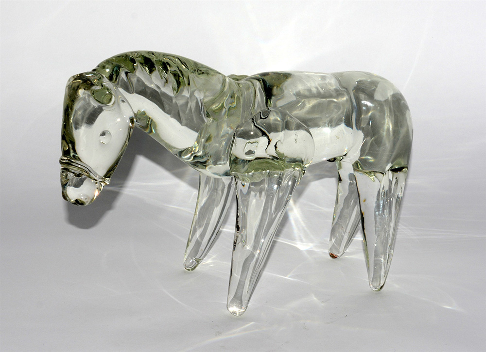 "Cavallo"Manifattura di Murano.Scultura in vetro massello incoloreo. Seconda...