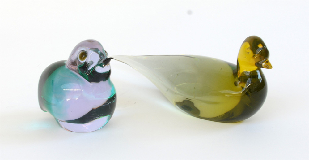 Lotto di 2 animali folaga e pulcino in vetro, di cui una firmata Cenedese.