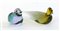 Lotto di una folaga e un pulcino in vetro sommerso giallo verde e...