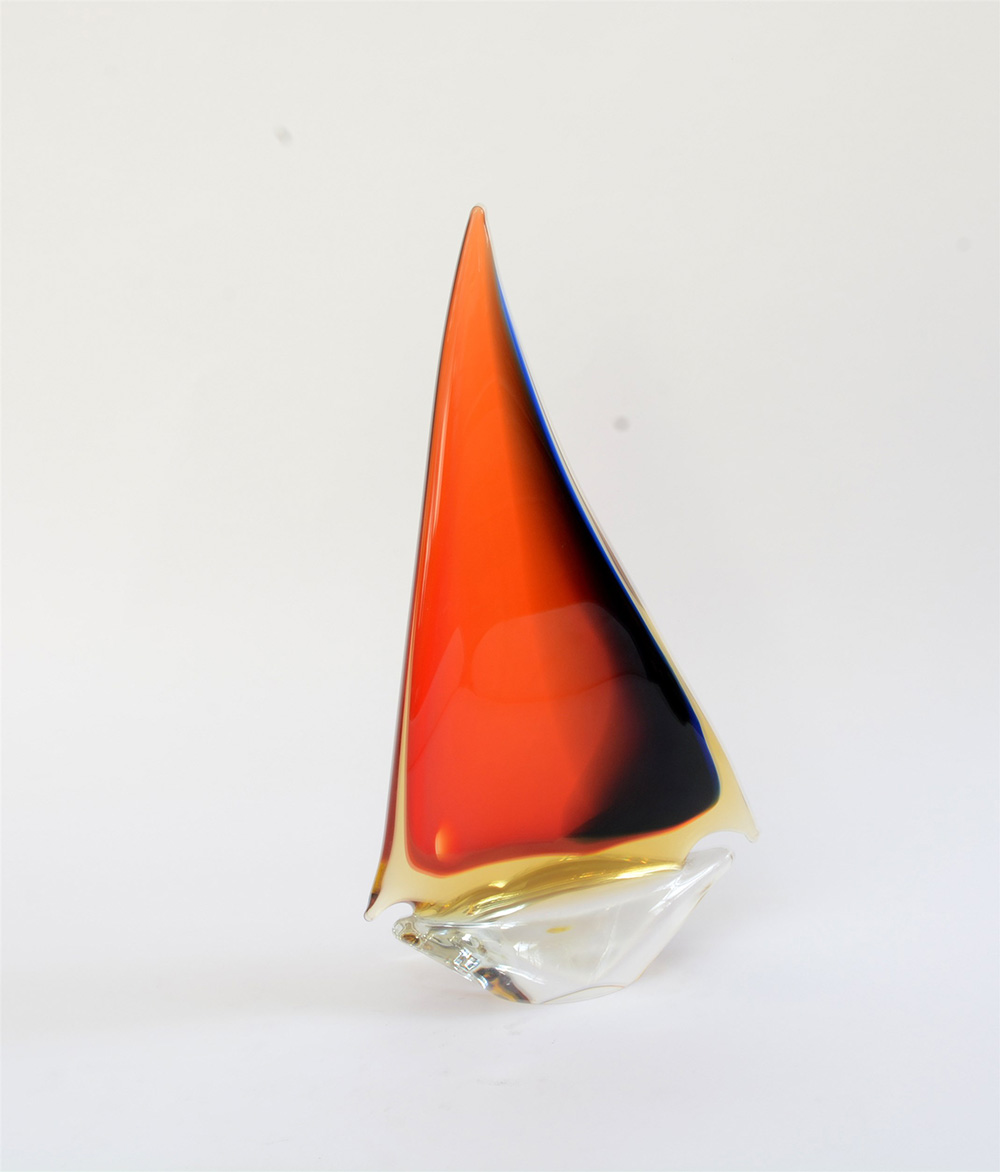 Seguso Arte "Barca a vela"Scultura in vetro sommerso incolore paglesco rosso...