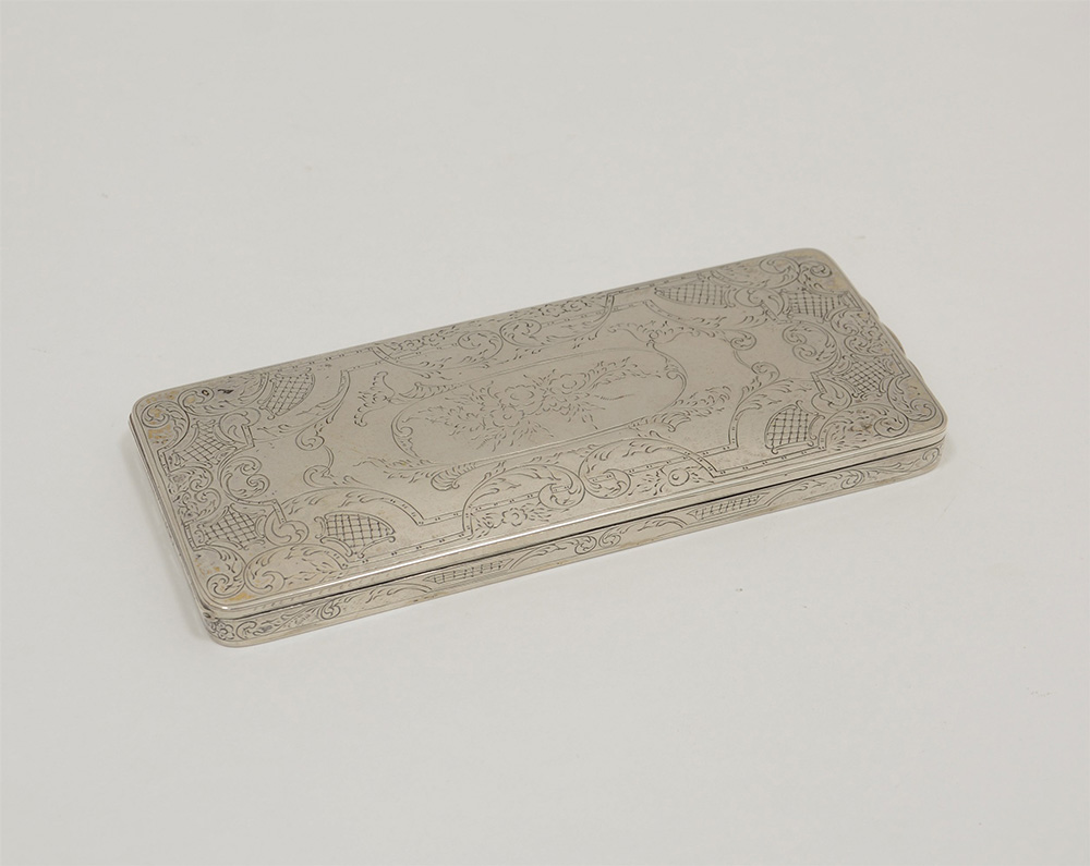 Portasigarette da tavolo in argento inciso al cesello (gr 250 ca.) (cm 18,5x8)