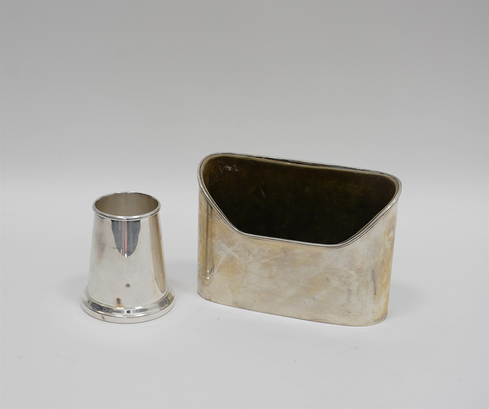 Lotto composto da un portapenne in metallo argentato e un porta carte in argento (gr 300 ca lordi)