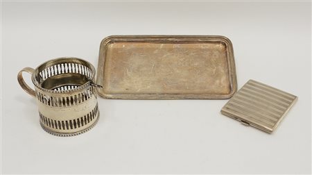 Lotto composto da un vassoietto, un portasigarette e una bugia in argento (g...