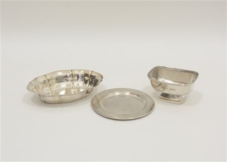 Lotto composto da tre bomboniere in argento (gr 270 ca.)