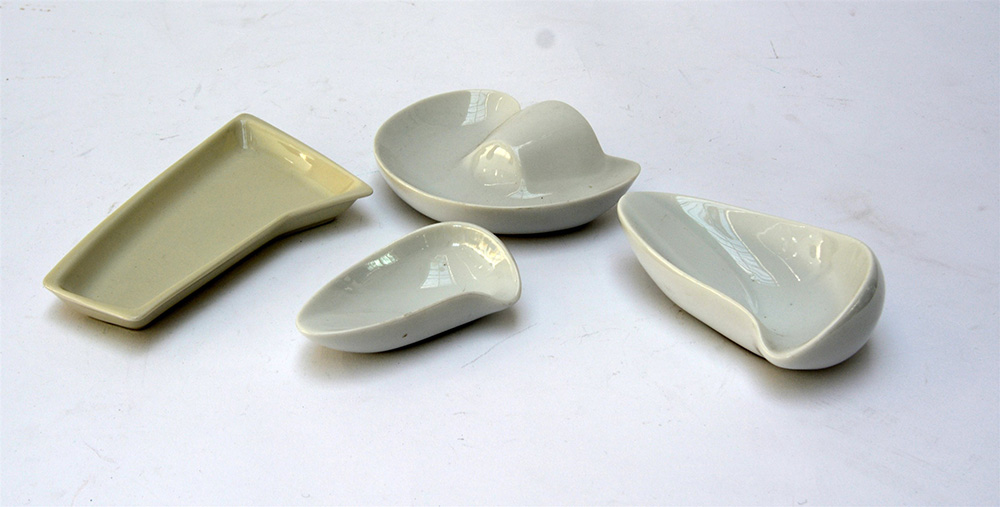 Gruppo di quattro posaceneri in ceramica e porcellana. Laveno, anni '50.