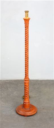 Lampada da terra in legno laccato, fusto a torciglione e base tonda (h cm 140) (difetti)