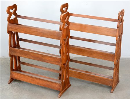 Coppia di piccole librerie a giorno con montanti radicati, sagomati e traforati (cm 64x87x29) fine secolo XIX (difetti)