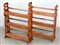Coppia di piccole librerie a giorno con montanti radicati, sagomati e...