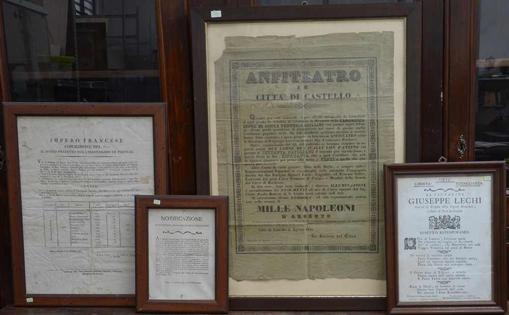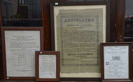 Gruppo di quattro grida del secolo XIX inerenti città di Castello e Perugia. In cornici (difetti)