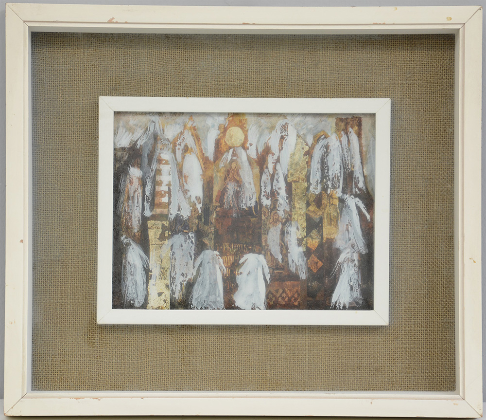 Ignoto "Interno di chiesa con chierici" riproduzione (cm 17x22) in cornice