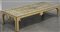 Tavolo da salotto rettangolare in legno con fasce sagomate, rivestito in tessuto con piano a ricamo floreale, borchie perimetrali (cm 181x41x76) (difetti)