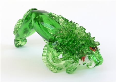"Leone"Manifattura di Murano.Scultura in vetro verde trasparente e con...