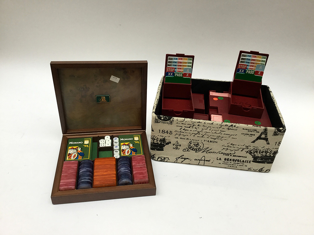 Lotto composto da set da gara e da giochi di carte, uno in scatola in legno