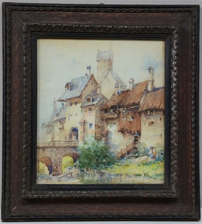 "Castello d'Aaran, Svizzera" acquarello su carta (cm 35x30) firmato e locato in basso a sinistra.